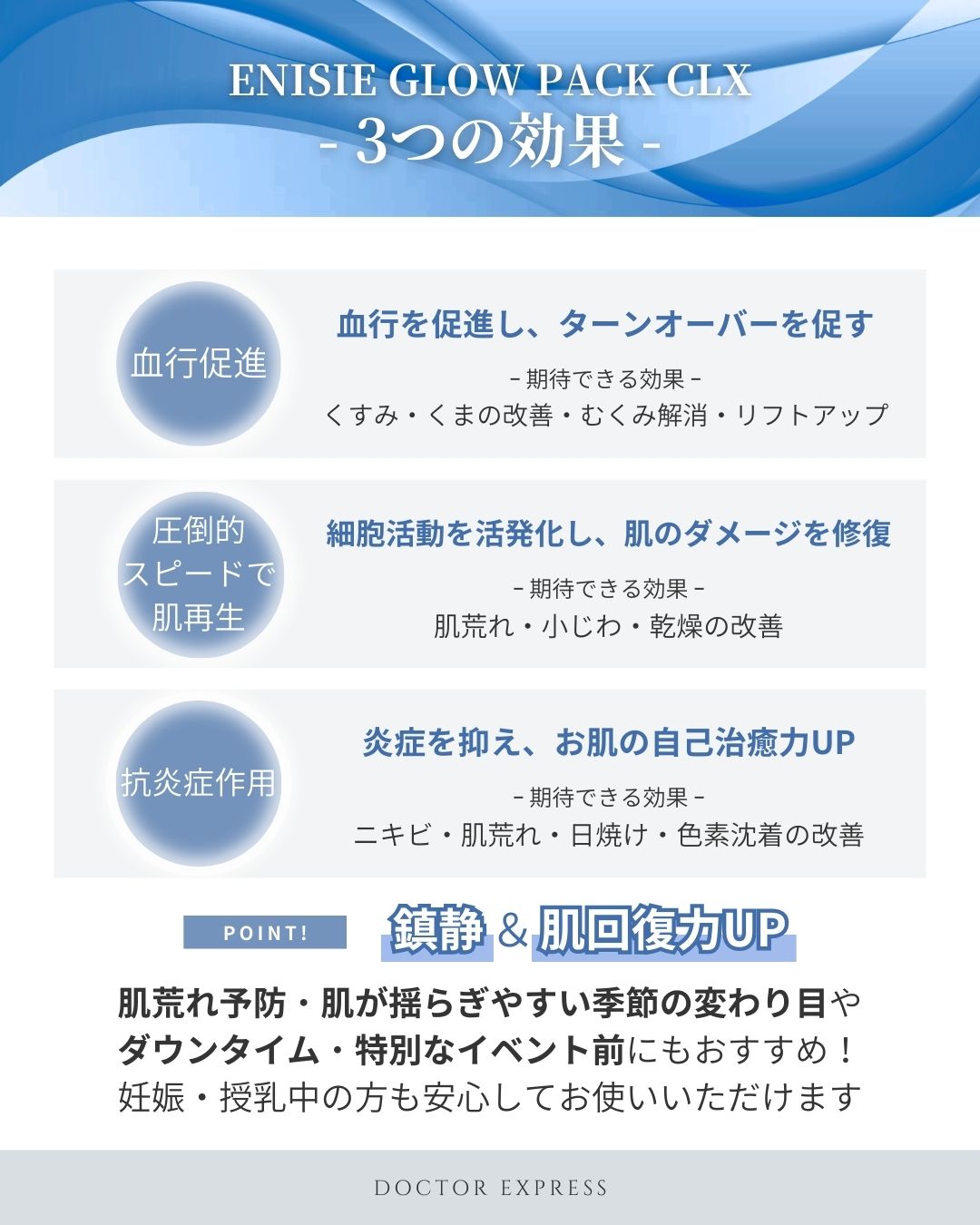 エニシーグローパックCLXは、炭酸ガスの力によって肌環境を整え、以下のような効果が期待できます。