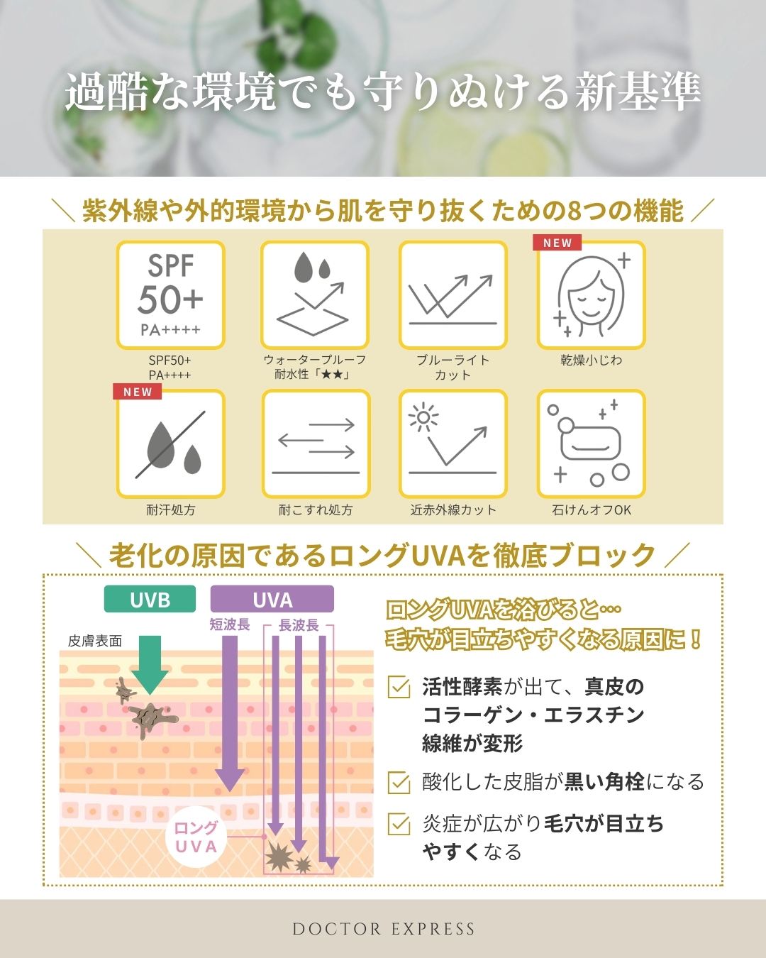 肌老化の原因であるロングUVAを徹底ブロック。