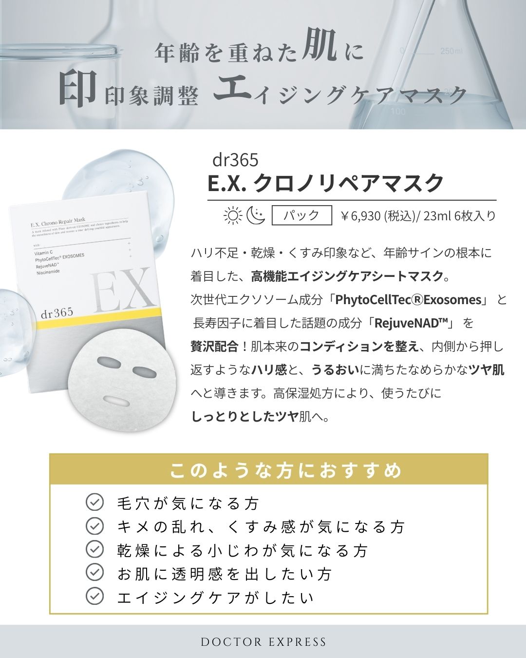 そんな大人の肌悩みにアプローチする高機能エイジングケアマスク【E.X. クロノリペアマスク】がdr365から誕生!