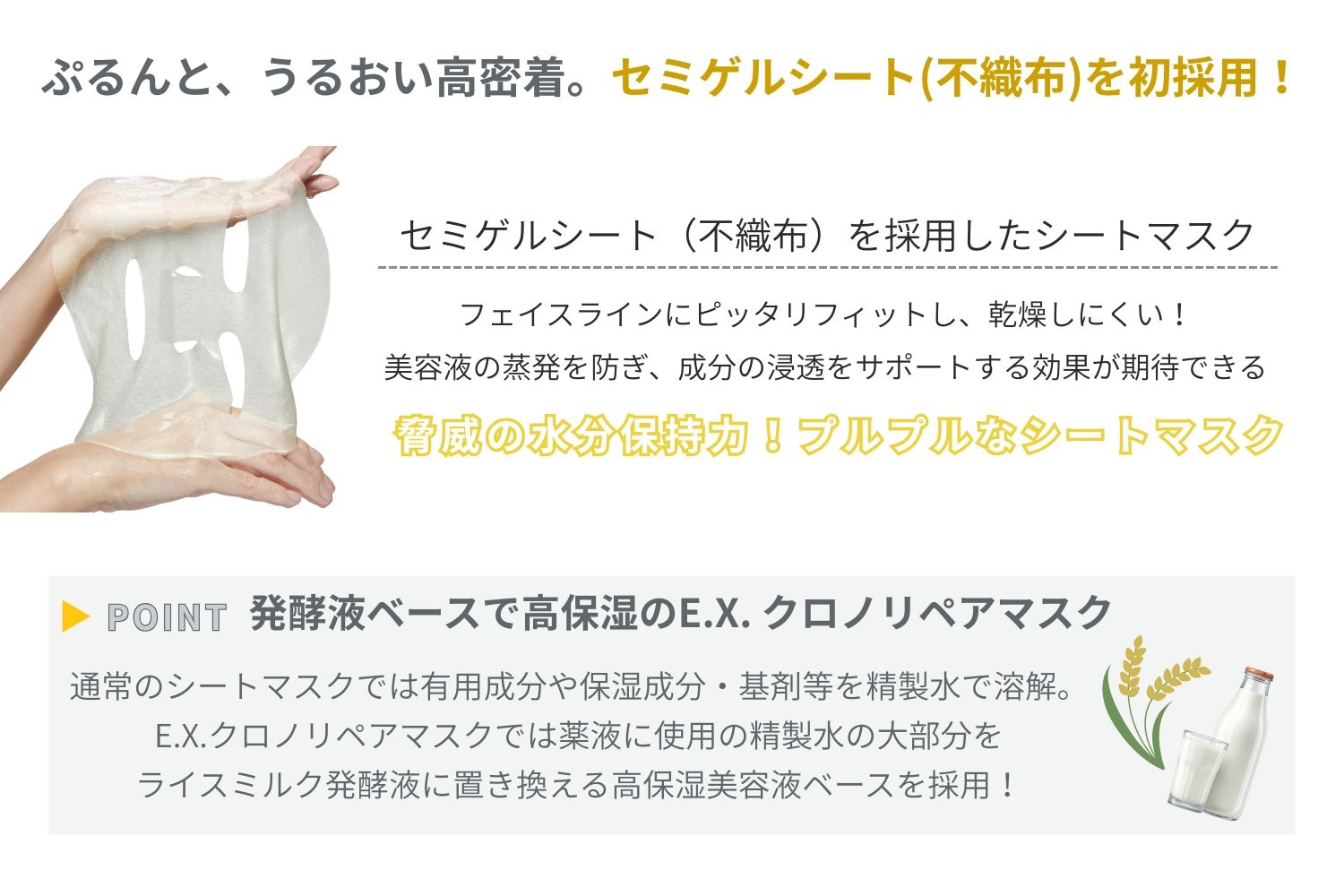 E.X. クロノリペアマスクは、印象再整エイジングケアをコンセプトに開発された高機能シートマスクです。