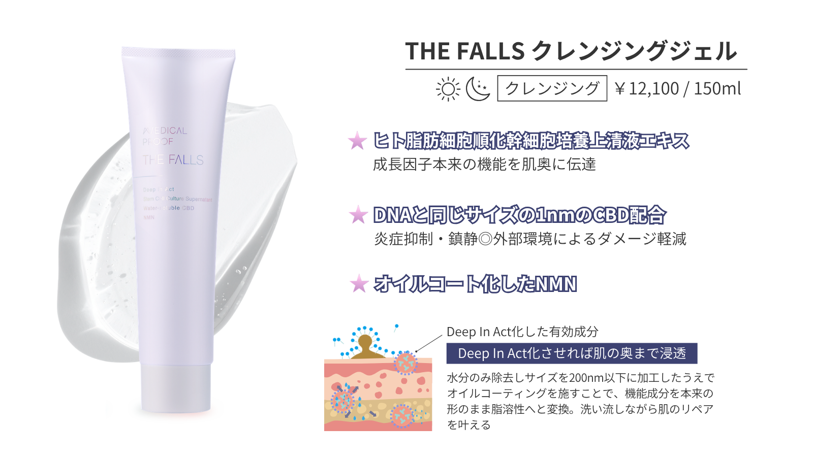 DNAと同じサイズの1nmのCBDや、オイルコート化したNMNを配合。洗い流しながら肌をリペアする、次世代のクレンジング